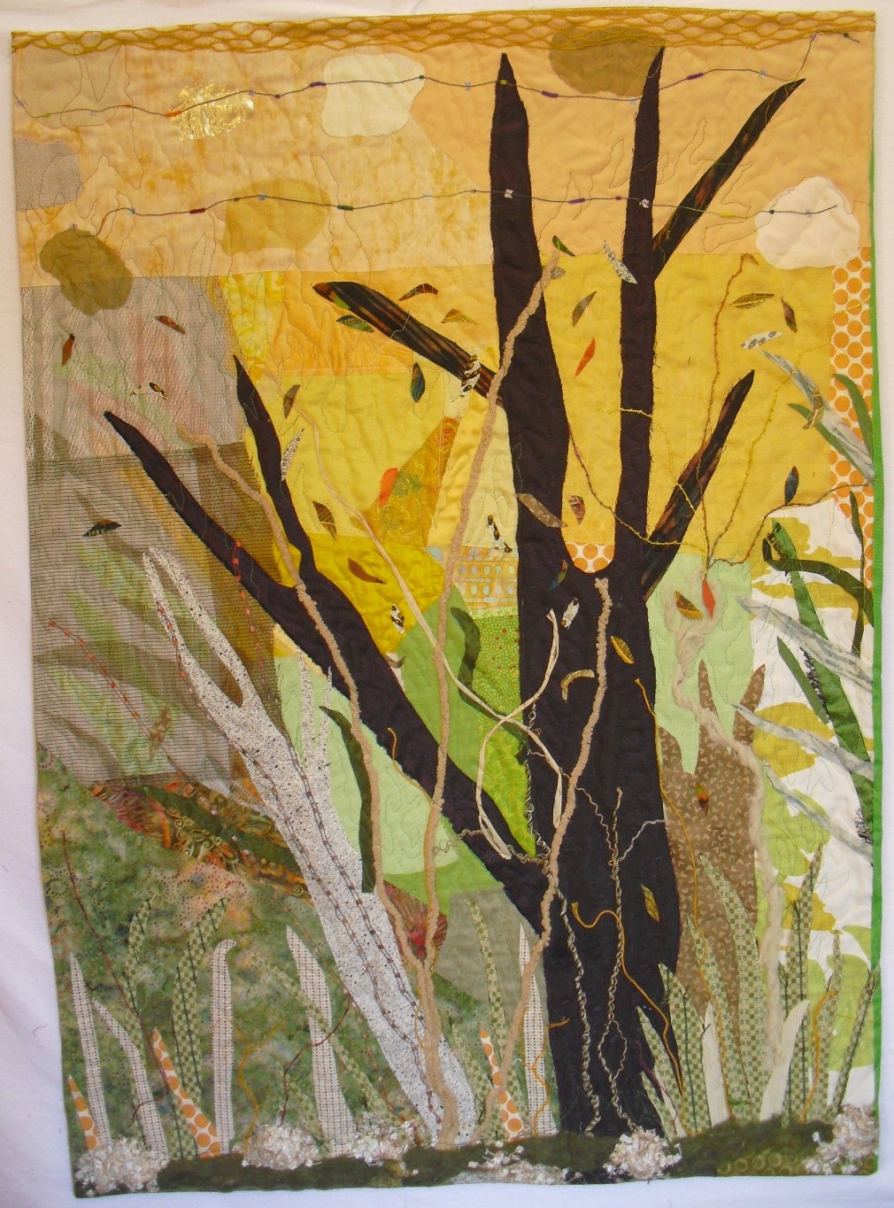 I am proud to be part of an evergrowing group of art quilters. SAQA started by Yvonne Porcella in Northern California in 1989. It has grown to an international organization. Art quilters have transformed the quilt into a 21st Century art form. I continue to explore new forms and ways of working with unusual materials on this journey.