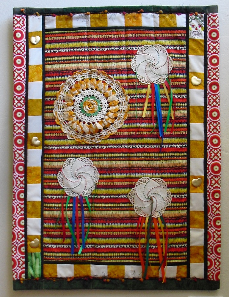 My home county, Santa Cruz County, California is one of the top five counties for working artists. The Arts Council Santa Cruz supports the arts and artists in many ways. Each month the walls of the County Administration Offices are decked out with the art of local artists. I never understood how that happened until I moved out of the traditional quilt world into the art quilt world. The County Arts Council sends out a call for entry each year to those on their email list or otherwise affiliated with them. They choose artists to show in December for the following year. The curtain was pulled back on of how this was done in a good way.