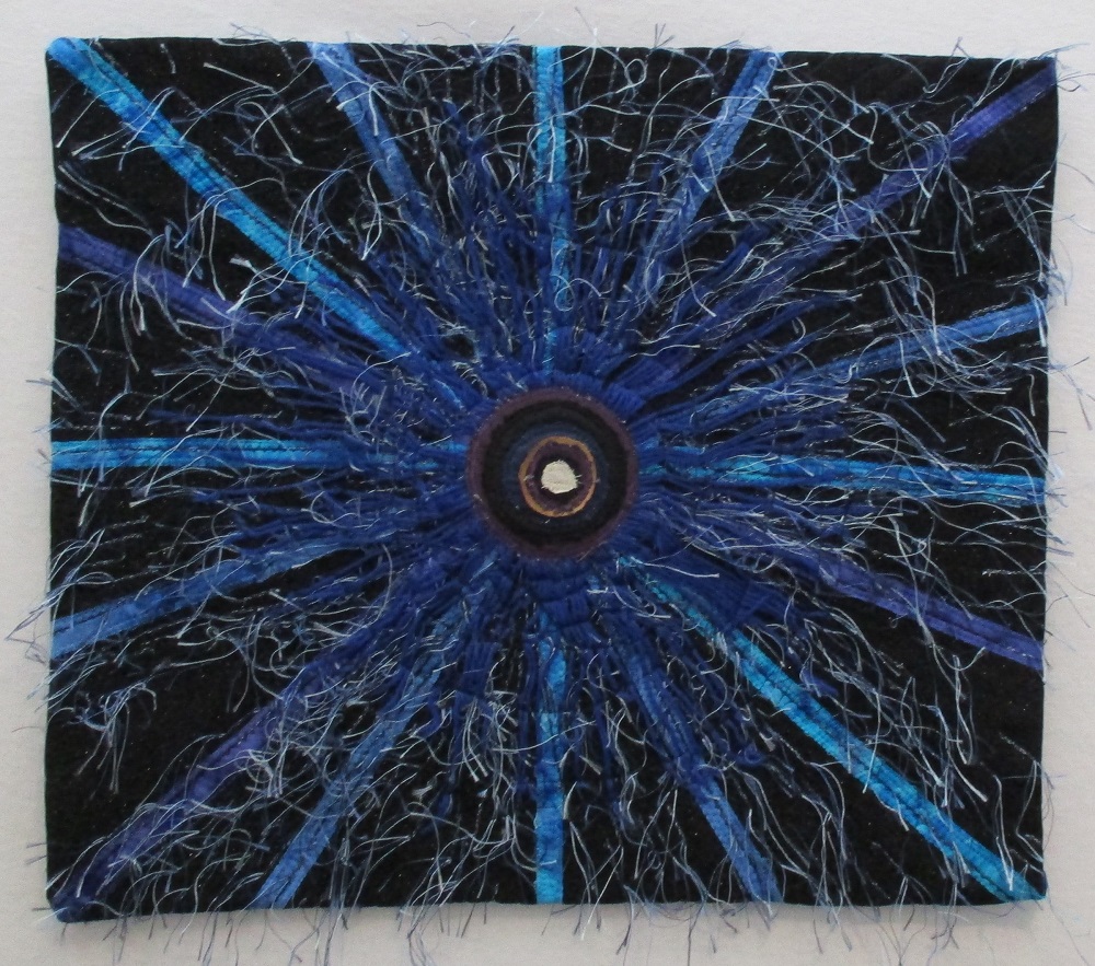 At first,I considered which of my pieces might align best with “space shots”. Then I decided that the abstract pieces or fabric layering technique creating scenes would work best. I feared I would have problems coming up with ideas. Then at least I could fall back on what I had already done. While it feels safe to have ideas before I start, I want to keep my options open to be inspired to move in new directions.