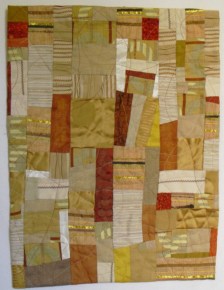 Autumn Comes to the Farm,an art quilt made from redirected fabrics, 20″ x 20″Desert Sands,21″ x 16″