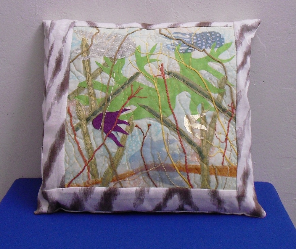 The finished art quilt, Sea Grass. Quilting lines add movement to the quilt top.