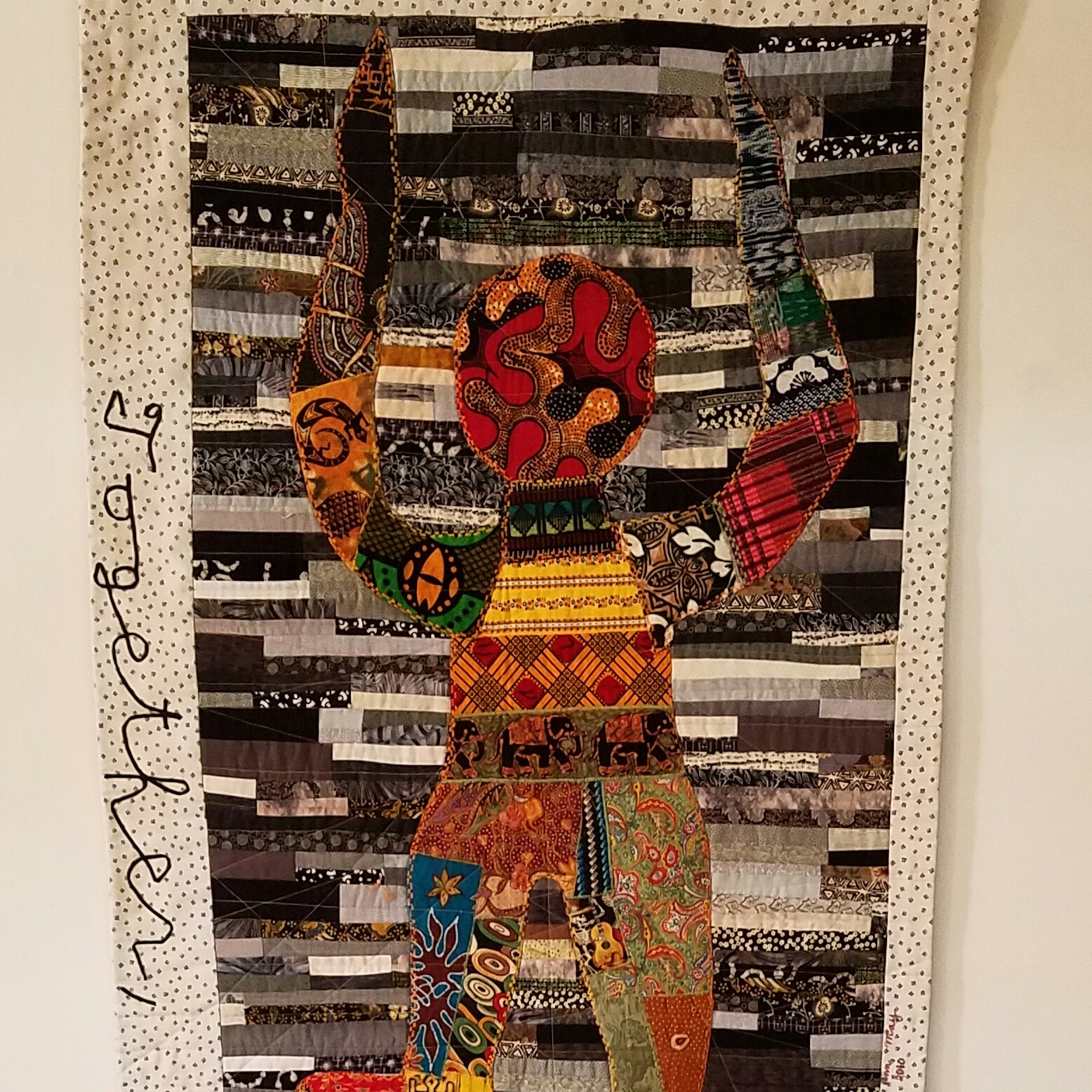 Funny story- I was asked to show my art quilts at a film festival taking play in a local gallery. They were having trouble with the acoustics. They wanted me to show my largest pieces of work to help with the sound. Because I had kept in touch through a monthly newsletter, the director was able to contact me quickly. I stepped up to the plate. I wish I could say I sold something but I can’t.